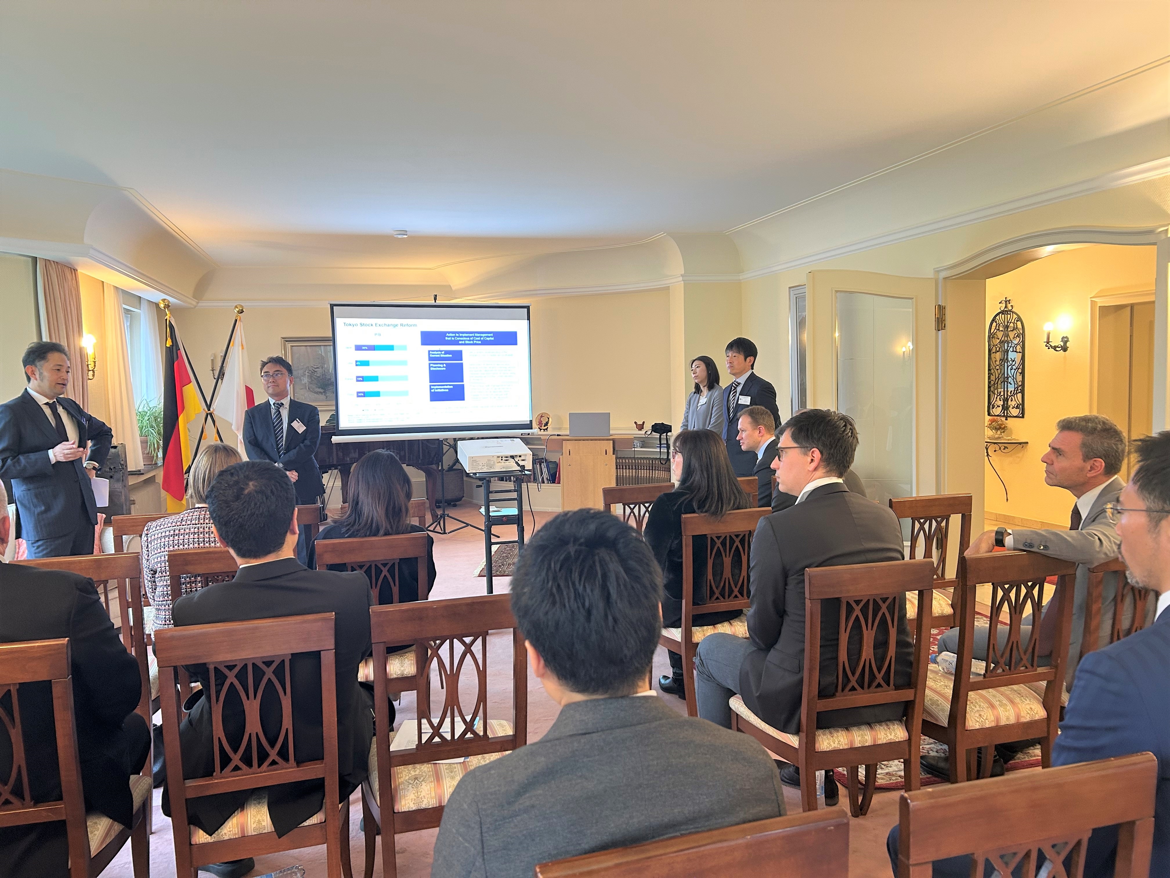 11月28日、公邸において、Asset Management One International・Mizuho EMEAによる日本株に関するセミナーおよびレセプションが開催され、伊藤総領事が出席しました。総領事は日本の総合経済対策や経済安全保障政策、日独関係について説明しました。 |