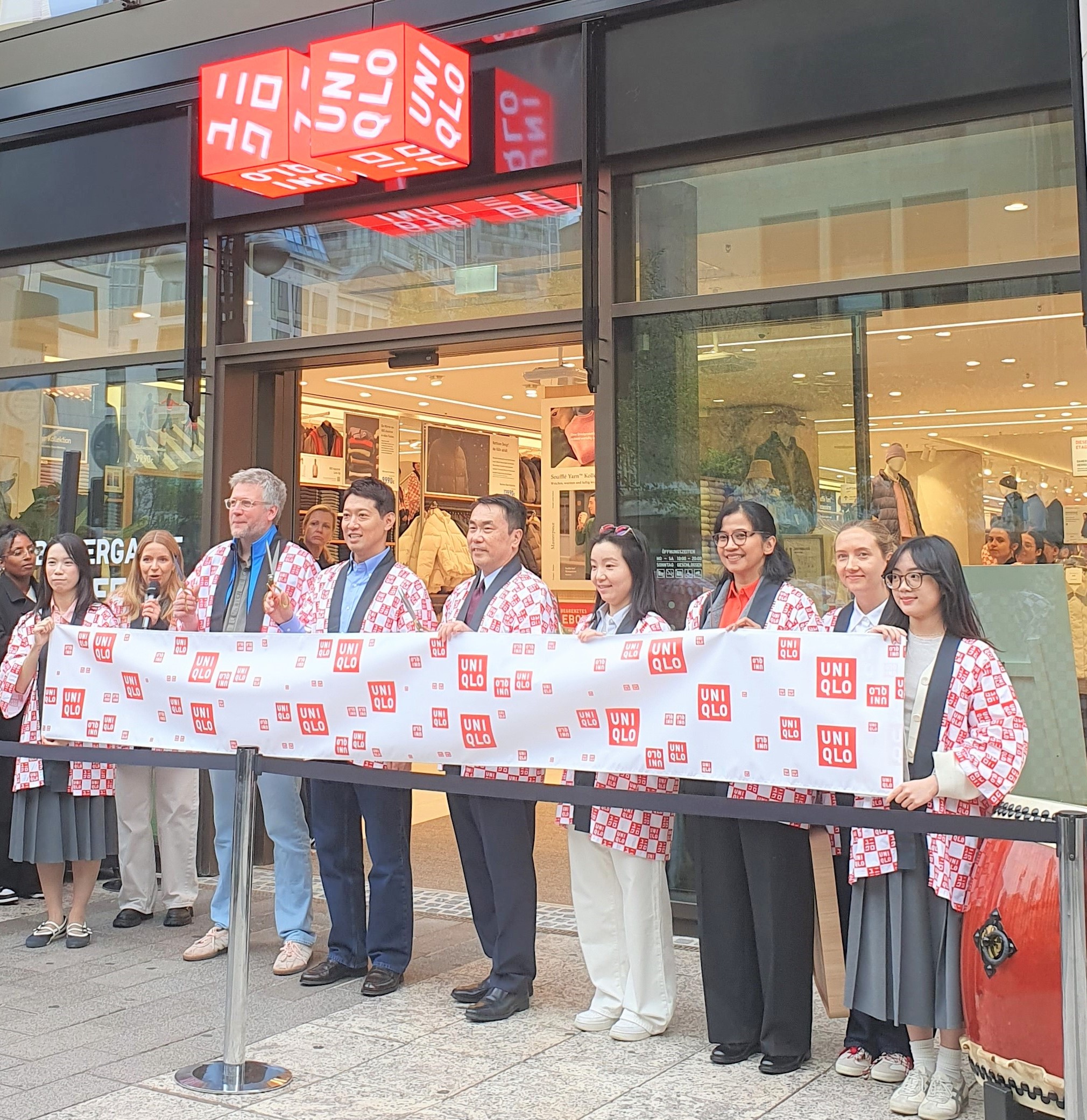 Zur Eröffungszeremonie der ersten UNIQLO Filiale in Frankfurt am 16. Oktober, richtete Generalkonsul Ito Grußworte an die Versammelten. Vor hunderten Zuschauern und hoffnungsvollen Kundinnen, die sich in einer langen Schlange um den Laden versammelt hatten, boten Musiker eine Taikovorstellung, bevor feierlich das Band durchschnitten und der Verkauf gestartet wurde. Aktuell betreibt UNIQLO 11 Filialen in Deutschland. In Frankfurt können Kundinnen zudem über das UTme!-System Kleidungsstücke mit Illustrationen der aus der Region stammenden Cynthia Kittler, sowie Illustrationen von der Sendung mit der Maus bedrucken lassen. |